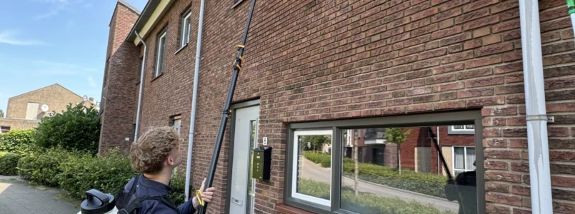 We beginnen met een zorgvuldige inspectie om te bepalen waar de meeste spinnen, insecten en hun nesten zich bevinden. Deze gebieden maken we vervolgens grondig schoon. Met een ragebol maken we ramen, overkappingen, kozijnen en gevels tot 7 meter* hoogte vrij van webben en vuil.